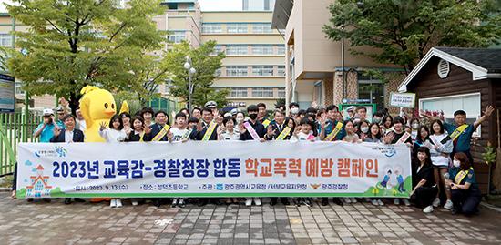 광주경찰청은 광주시교육청과 함께 13일 오전 광주 광산구 성덕초등학교에서 학교폭력 예방 합동 홍보 활동을 펼쳤다.
