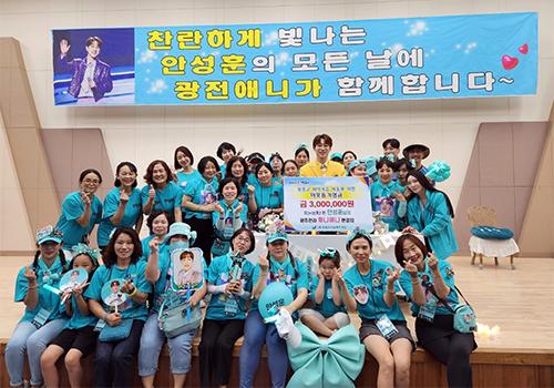 미스터 트롯2 진 안성훈의 팬클럽 광주전라 ‘후니애니’는 12일 (재)장흥군 나눔복지재단에 300만원을 기부했다.
