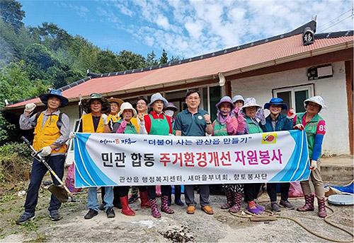 마을 이장으로부터 이런 사실을 접한 관산읍은 관산읍새마을부녀회 및 향토봉사단과 협력하여 싱크대, 화장실, 거실 등을 청소하고, 풀베기 및 폐품 분리수거로 주거환경을 크게 개선했다.