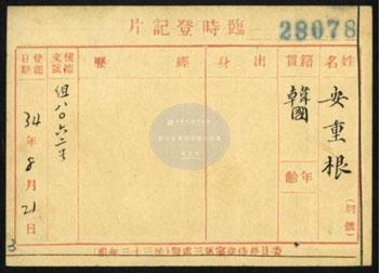 특히, 1910년에 순국한 안중근 의사의 인사카드는 순국 35년이 지난 1945년에 등록됐다는 점에서, 안중근 의사와 안 의사의 의거에 대한 당시 중국 국민정부의 평가를 짐작할 수 있다.