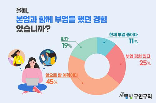18일 사랑방구인구직 플랫폼(job.sarangbang.com)이 9월 4~12일 광주시민 425명을 대상으로 \'부업 이용 실태조사\'를 한 결과에 따르면 응답자의 35.8%가 부업 경험이 있다고 답했다.