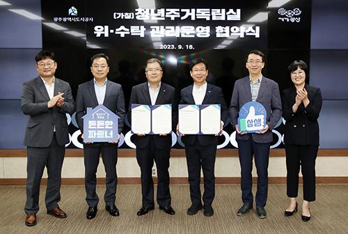 광산구는 18일 구청 2층 상황실에서 광주도시공사와 (가칭)‘청년주거독립실\' 사업 추진을 위한 위·수탁 관리 운영 협약을 체결했다.