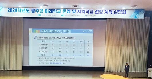 시교육청은 \'학교별 특색(빛깔)을 키우기 위한 2024 자치학교\'와 \'광주형 미래 혁신학교\' \'연구학교\'를 확대·지원한다고 20일 밝혔다.