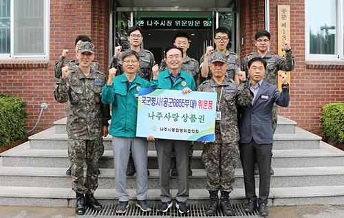 나주시통합방위협의회 의장인 윤병태 나주시장이 21일 추석 명절을 앞두고 지역 군부대를 찾아 명절 위문품(나주사랑상품권)을 전달했다.