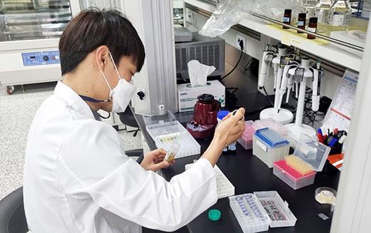 전남농업기술원 내 농산물 안전분석실에서 연구원이 잔류농약 검사를 하고 있다. /전남농기원 제공