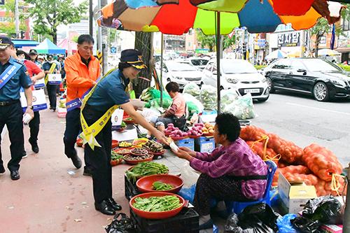 순천경찰서와 웃장시장번영회, 새마을부녀회 등 30여명이 참석해 전통시장 방문객을 대상으로 교통법규 준수 및 보이스피싱·절도 등 범죄예방 홍보활동을 추진했다.