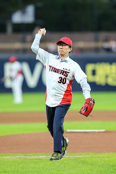 임기철 광주과학기술원 총장 시구. /기아타이거즈 제공