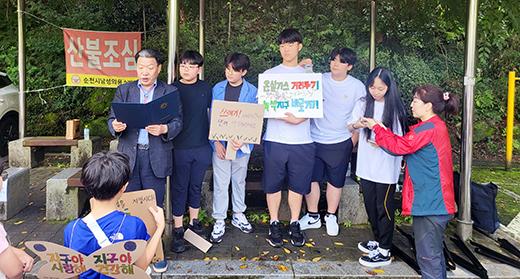 순천교육청은 지난 5월부터 학생 주도형 영산강(내고장) 프로젝트를 계획해 6개의 동아리 운영을 지원하고 있으며, 지난 22일 순천 지역 교육 주체(교원, 학생, 학부모) 및 교육지원청, 유관기관 등 약 60여 명이 함께 참여하여 봉화산 둘레길을 탐사하며 생태 보전 실천 선언문 낭독, 캠페인 활동, 플로깅 활동 등 다양하고 의미 있는 활동으로 이어졌다.