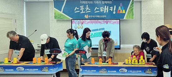 광주시 서구가 지난 25일 광주서구치매안심센터에서 치매환자와 가족들이 함께하는 ‘스포츠 스태킹’ 대회를 개최했다.