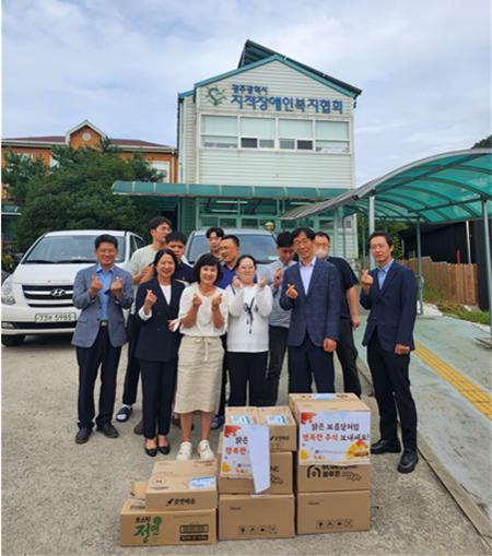 광주학생독립운동기념회관(이하 회관)이 추석을 앞둔 지난 25일 광주시 지적장애인복지협회를 방문해 생필품을 전달하고 종사자들을 격려했다.