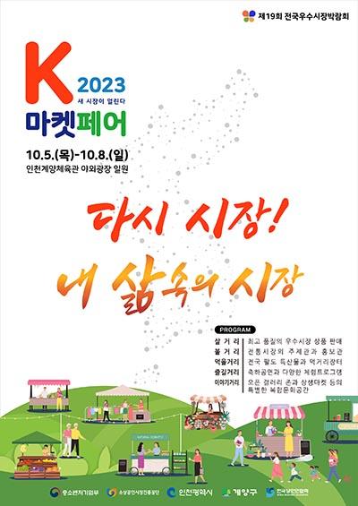 광주·전남지방중소벤처기업청에 따르면 중소벤처기업부(중기부)는 전통시장 국내 최대 행사인 \'2023 전국우수시장박람회, K-마켓 페어\'를 오는 5일부터 8일까지, 4일간 인천에서 개최한다고 4일 밝혔다.
