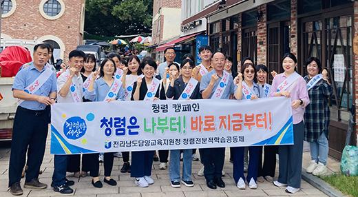 담양교육지원청은 지난달 27일 담양읍전통시장에서 추석 명절을 맞아 ‘전통시장 가는 날’ 장보기 행사와 ‘청렴캠페인’를 함께 진행했다.