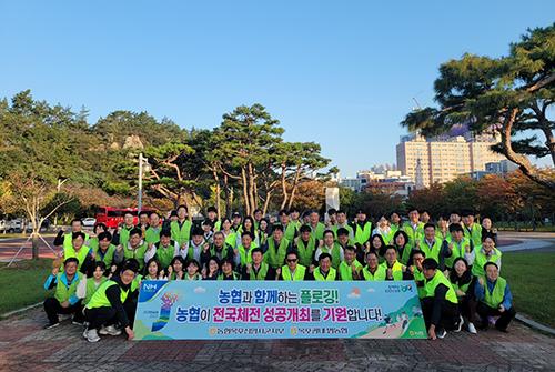 농협전남본부는 12일 농협목포신안시군지부와 함께 오는 13일부터 개최되는 전국체전 성공개최를 기원하기 위해 주 개최지인 목포시 평화광장 일원에서 \'농협과 함께하는 플로깅\'행사를 했다고 밝혔다.