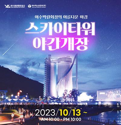 이번 야간개장은 여수와 세계박람회장의 아름다운 야경을 지역 시민과 관광객들에게 제공하기 위해 추진됐으며, 스카이타워 운영시간은 오후 10시까지로 확대된다.