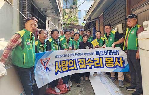 국제와이즈멘 한국지역 전남지구 서해중지방 목포비파클럽(이하 국제와이즈멘 목포비파클럽)과 우리동네 복지기동대원 20여명이 목원동 취약계층 장애인가구의 집수리를 지난 14일 진행했다.