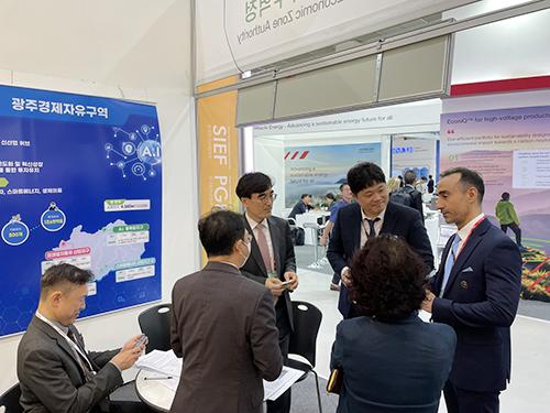 광주경자청은 이번 전시회에 광주도시공사·광주테크노파크와 공동으로 홍보부스를 운영해 ▲스마트에너지산업지구Ⅰ·Ⅱ ▲미래형자동차 산업지구 ▲인공지능(AI) 융복합지구의 투자여건 및 분양 안내, 기업 지원, 펀드투자 등 광주시 인공지능(AI) 산업과 연계한 에너지 전환 및 신산업 육성방안에 대해 설명하고, 투자상담도 진행했다.