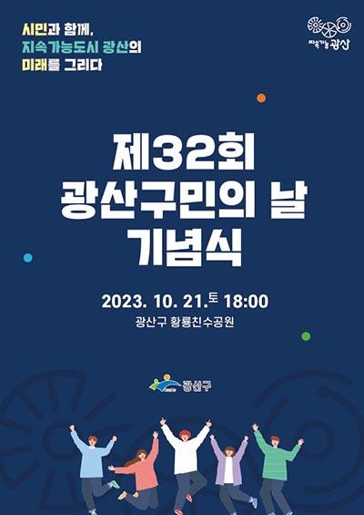 광주 광산구는 21일 황룡친수공원에서 ‘광산뮤직ON페스티벌’과 연계해 ‘시민과 함께, 지속가능도시 광산의 미래를 그리다’를 구호로 제32회 광산구민의 날 기념식을 개최한다.