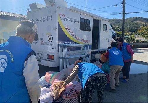장흥군 장동면은 18일 전남도자원봉사센터와 장동면 우리동네 복지기동대가 함께 협력해 찾아가는 나눔 이동세탁을 실시했다고 밝혔다.