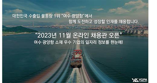 여수광양항만공사(YGPA)는 여수·광양항 소재 기업과 구직자를 매칭하기 위해 오는 11월 중순 온라인 채용관을 오픈할 계획이다.