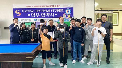 용연학교에 따르면 이번 협약은 학교스포츠클럽 및 학생들의 전문 당구 교육 활성화를 위해 체결됐다. 이를 통해 양 기관은 ▲학교스포츠클럽 및 당구 교육 프로그램 활동 지원 ▲건전한 당구 문화 발전을 위한 환경 조성 등에 협력하기로 했다.