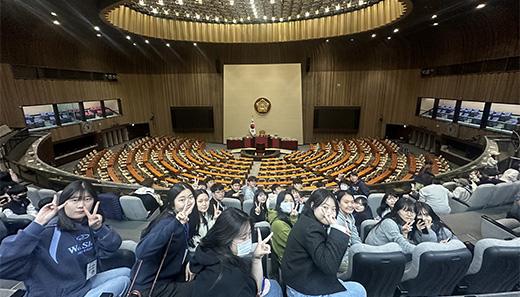 특히 학생들은 매스컴으로만 봤던 국회를 직접 방문해 현직 국회 관계자로부터 ‘국회가 가지는 의미와 역사, 국회의원의 회의 진행 방법 등에 관한 설명 등’을 청취하기도 했다. 또 일반인에게 공개되지 않는 국회 의원회관에서 국회 직원들과 같이 국회의원 집무실을 탐방하고, 국회 세미나실에서 정책메이커교실을 진행하는 체험활동에 참여했다. 참가 학생들은 높은 호응을 보이며 ‘정치여행’에 대한 만족감을 나타냈다.