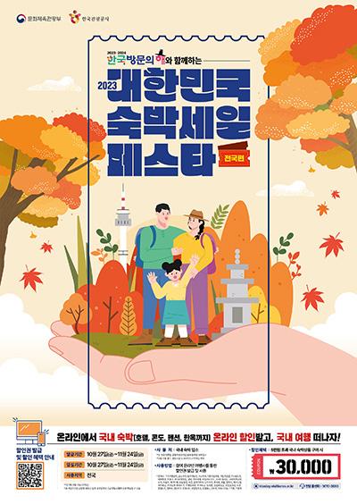 문화체육관광부와 한국관광공사가 올해 마지막 \'대한민국 숙박세일 페스타\'를 진행한다.