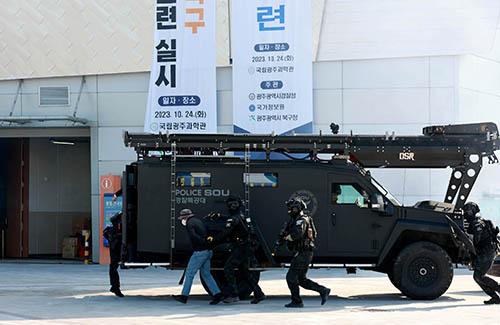 광주경찰청은 24일 광주 북구 국립광주과학관에서 국가정보원·북구청과 함께 관계기관 합동 대테러 훈련을 벌였다고 밝혔다.