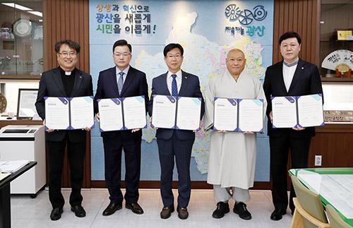 광주 광산구는 25일 광산구기독교교단협의회, 가톨릭광주사회복지회, 광주불교연합회, 원불교 광주전남교구 서부지구 4개 종교단체와 돌봄 사각지대 발굴을 위한 업무협약을 체결했다고 밝혔다.