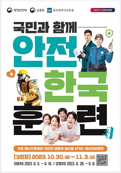 광주시교육청이 10월30일~11월3일 5일 동안 ‘2023 재난대응 안전한국훈련’을 실시한다고 밝혔다.