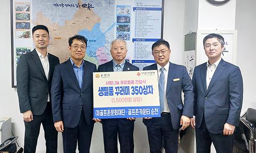 순천시는 골프존문화재단과 골프존카운티순천에서 어려운 이웃을 위해 생필품꾸러미 350상자(1500만 원 상당)를 기탁했다고 29일 밝혔다.