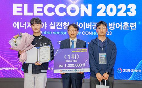 한전KDN이 한국전력공사 나주 본사 비전홀에서 열린 \'제3회 실전형 사이버공격 방어훈련\'(ELECCON 2023) 대회에서 종합 1위의 영예를 안았다.