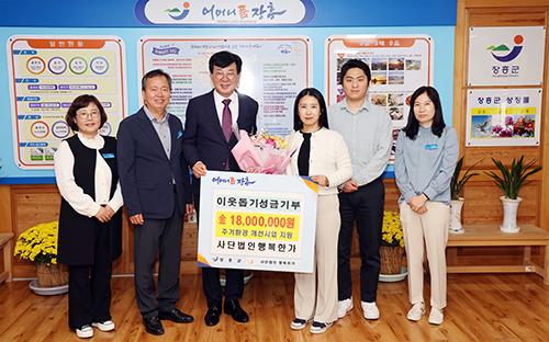 장흥군은 26일 사단법인 행복한가에서 저소득 가구를 위해 성금 1800만원을 기부했다고 밝혔다.