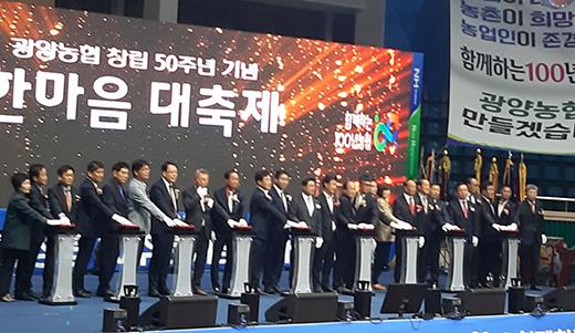 광양농협은 창립 50주년을 맞아 10월 31일 광양실내체육관에서 ‘창립 50주년 기념 한마음 대축제’를 개최했다.