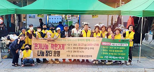순천시 왕조1동 마중물보장협의체는 왕조1동 행정복지센터 주차장에서 ‘따뜻한 마음, 함께 나누면 우리의 행복이 됩니다’라는 주제로 온기나눔 착한가게 나눔장터를 열어 주민들의 큰 호응을 얻었다.