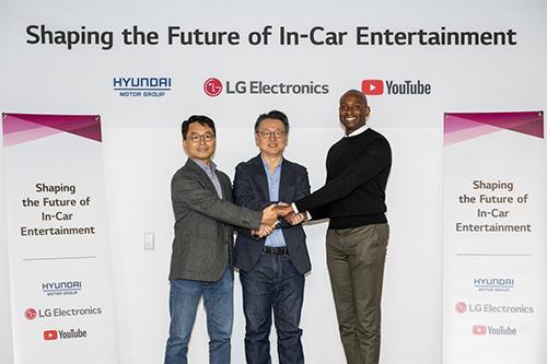 현대차·기아는 지난달 31일(현지시간) LG전자, 유튜브와 함께 ‘차량 내 엔터테인먼트 고객경험 증진’을 위해 협력하고, 나아가 차량 인포테인먼트 시스템을 통해 다양한 영상 스트리밍 서비스를 제공한다고 1일 밝혔다.
