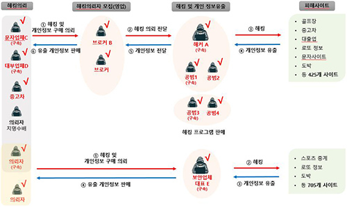 조사 결과 이들은 전문 해커, 유출 정보 공급책, 알선책, 판매책 등 점 조직 형태로 범행한 것으로 드러났다.