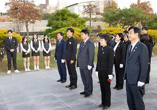 광주시교육청은 3일 제94주년 학생독립운동기념일을 맞이해 학생독립운동 기념탑(비) 참배 행사를 개최했다.