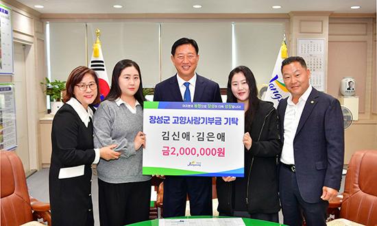 군에 따르면 김신애, 김은애 자매가 아버지 김성옥 씨 고향인 장성군에 고향사랑기부금 각 100만 원씩, 총 200만 원을 기부했다.
