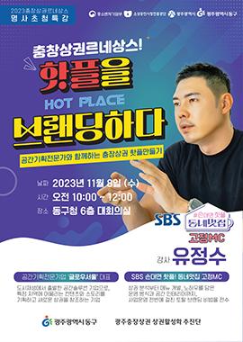 광주 동구는 오는 8일 오전 10시 구청 6층 대회의실에서 유정수 글로우서울 대표이사를 초청해 ‘핫플(HOT PLACE)을 브랜딩하다’를 주제로 ‘충장르네상스 명사 초청 특별강연’을 개최한다고 밝혔다.