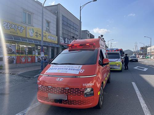 진도소방서는 지난 1일 오후 전국 동시 소방차 길터주기 훈련을 실시했다고 전했다.