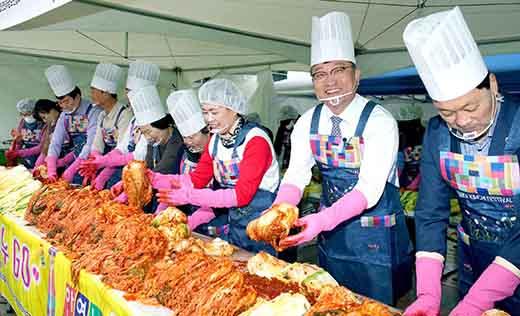전남도는 오는 22일 김치의 날을 앞두고 7일 도청 만남의 광장에서 어려운 이웃에게 전달할 김장김치 담그기 봉사활동을 펼쳤다.