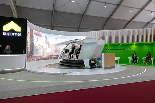 현대차그룹 계열 도심항공모빌리티(UAM) 전문업체 슈퍼널이 하늘을 나는 택시를 제조하기 위한 공장을 미국에 건설할 예정인 것으로 전해졌다. 사진은 지난달 열린 \'서울 ADEX 2023\' 전시회에서 슈퍼널 부스의 모습. (사진=현대차그룹 제공)