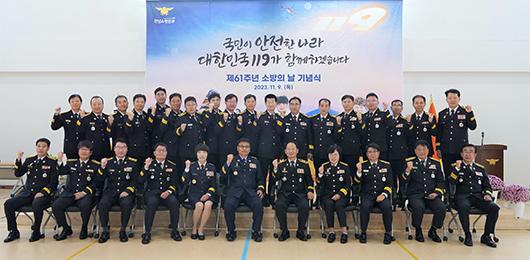 전남소방본부가 9일 장흥소방서 대강당에서 홍영근 전남소방본부장, 소방공무원, 의용소방대, 소방관 가족 등 100여 명이 참석한 가운데 제61주년 소방의 날 기념식을 개최했다.