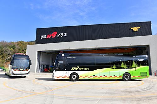 또한 전동식 어닝 및 어닝 룸 텐트를 설치해 야외에서도 외부 시선에 구애받지 않고 편하게 쉴 수 있는 휴식 공간을 갖췄으며, 버스 내외부에서 사용할 수 있는 접이식 의자, 테이블, 간이 개수대, 안마기기도 별도로 제공해 소방관들의 편의를 높였다.