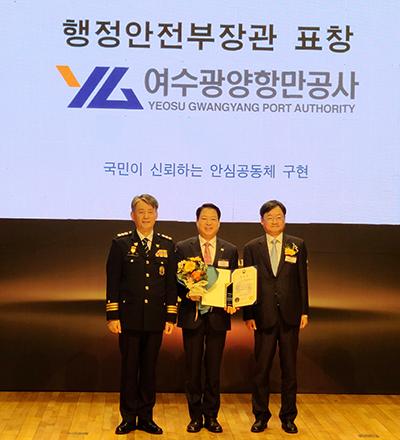 여수광양항만공사(이하 공사)는 경찰청과 중앙일보가 공동 주최하는 ‘제8회 대한민국 범죄예상 대상’에서 치안 거버넌스 부문 최우수기관으로 선정되어 지난 10일 행정안전부 장관 표창을 수상했다.
