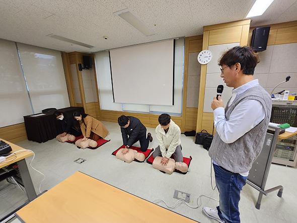 교육 주요 내용은 ▲ 응급처치 이론 ▲심폐소생술 및 자동제세동기 사용법 실습 ▲하임리히법 연령별 대처방법 ▲ 화상, 골절 등 응급사항 발생시 대처 방법 등이다.