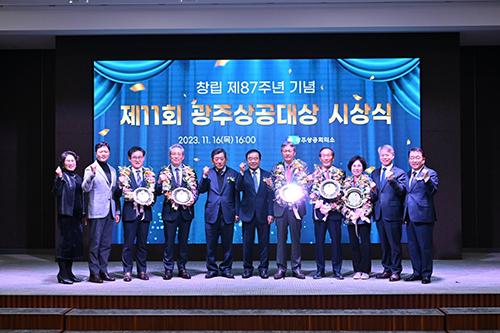 광주상공회의소는 16일 오후 상의 7층 대회의실에서 지역 상공인과 경제 유관기관 및 단체장 등 130여 명이 참석한 가운데 ‘창립 제87주년 기념 제11회 광주상공대상 시상식’을 개최했다고 밝혔다.
