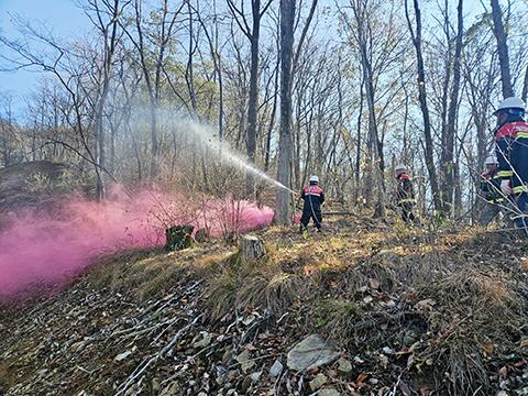 이번 훈련은 곡성군 목사동면 죽정리 산불진화임도를 활용해 진행됐고 산불 발생 신고가 접수되자 즉시 산불재난특수진화대 및 산불전문예방진화대가 출동해 산불진화를 시작했다.