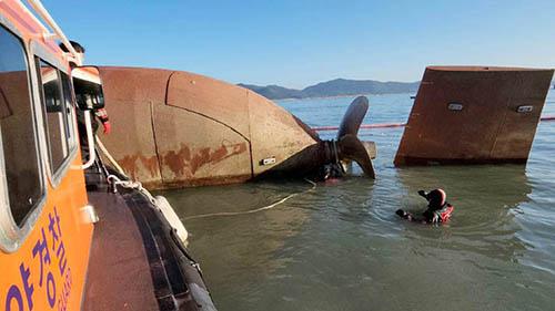 완도 바다에서 무인도와 충돌한 5000t급 화물선이 침수·전복됐으나 승선원 13명 전원이 해경에 의해 구조됐다.