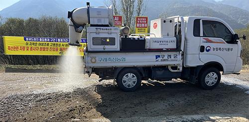 철새도래지 주변 도로 소독. /전남도 제공